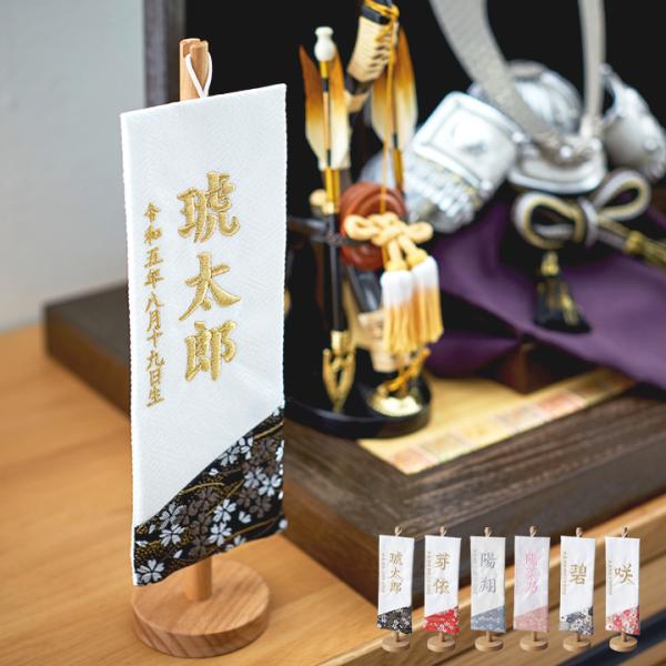 名前旗 名前札 男の子 女の子 ひな祭り 刺繍 節句 日本製 五月人形 こどもの日 初節句 端午の節句 桃の節句 雛まつり 雛祭り 白地/木製スタンド 名入れ無料