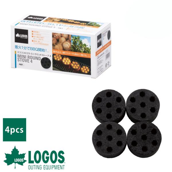 ロゴス logos 炭 燃料 ミニタイプ コンパクト 燃焼 パワフル ラウンドストーブ 即着火 4pcs レジャー エコココロゴス・ミニラウンドストーブ4 83100104