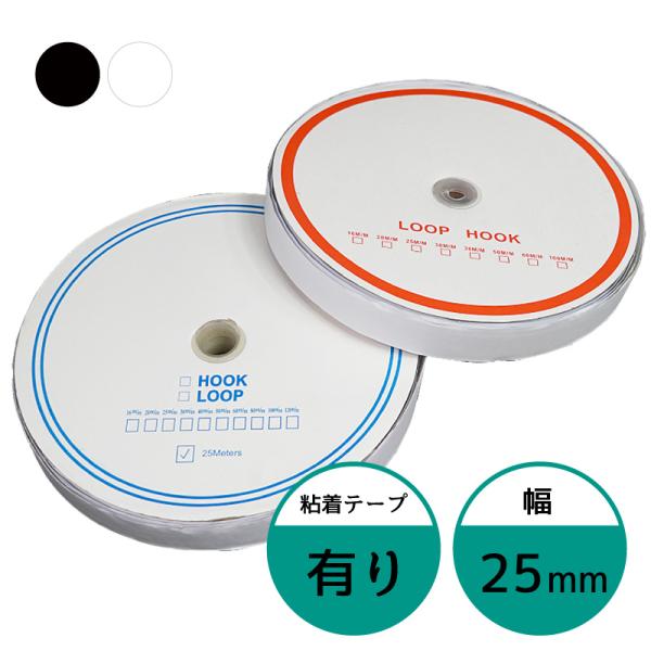 面ファスナー 25mm 25M巻き 両面テープあり フック ループ 2本 2.5cm 25ミリ オス メス