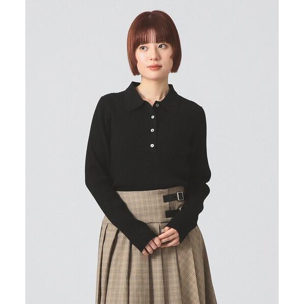 ポロシャツ ポロ リブ ニット ポロシャツ 「手洗い可」 レディース
