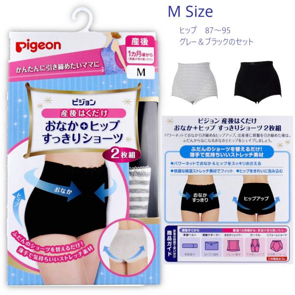 ピジョン 産後はくだけ おなか+ヒップすっきりショーツ グレー&ブラック Lサイズ 2枚組