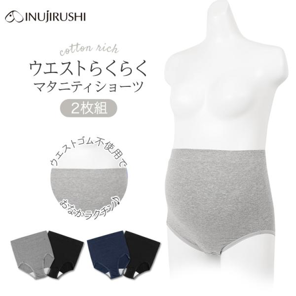 【メール便可】犬印本舗 マタニティ ウエストらくらく ショーツ 2枚組 M L LL 3L 綿 コットン 大きいサイズ レディース マタニティインナー 下着 締め付けない
