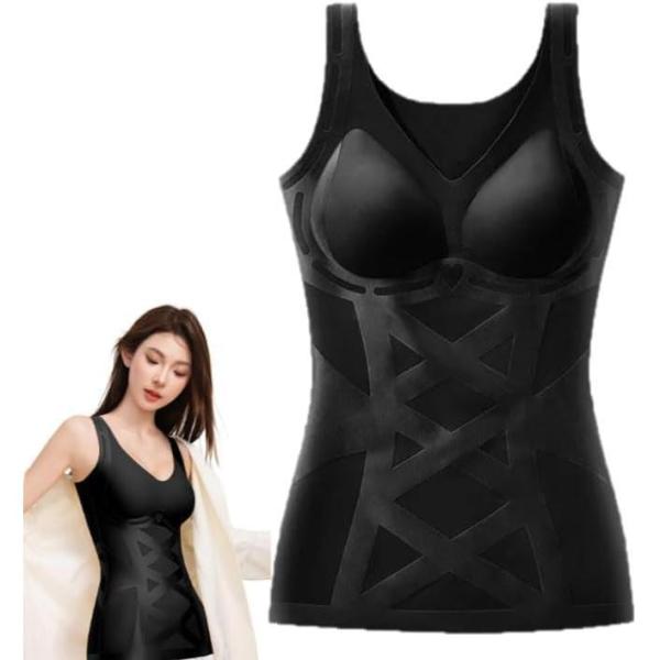 加圧インナー レディース 天使の羽パネル姿勢サポートタンクトップ美バストxお腹くびれx脇肉フラット姿勢補正 補正下着 着圧ブラトップ 加圧タンクトップ