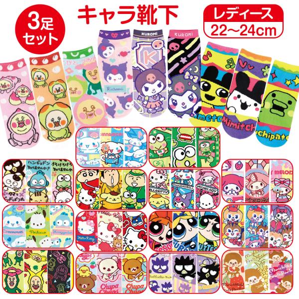 【3足 送料無料】 キャラクター 靴下 3足 かわいい サンリオ ソックス レディース こびとづかん モンチッチ パワーパフ ショート丈 クルー丈 スニーカーソックス
