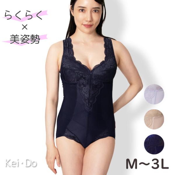 ボディスーツ ノンワイヤー クロッチ らくらく 補正下着 美姿勢 レディース ヒップアップ くびれ ぽっこりお腹 引き締め