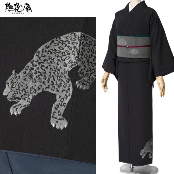 着物 撫松庵 ヒョウ刺繍 ブラック レオパード 豹 袷 付け下げ ワンポイント 無地 仕立て上がり プレタ 単品 刺しゅう 日本製