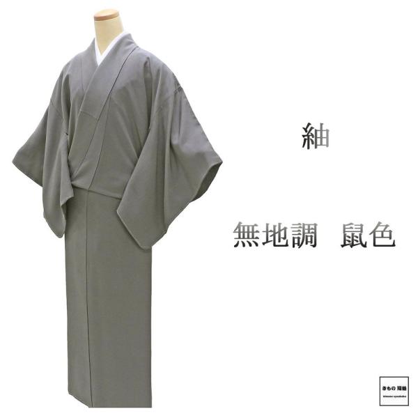 紬 正絹 無地調 鼠色 身丈150.5cm 裄丈64.5cm 一つ紋 中古 リサイクル 着物 カジュアル 街着 d4117