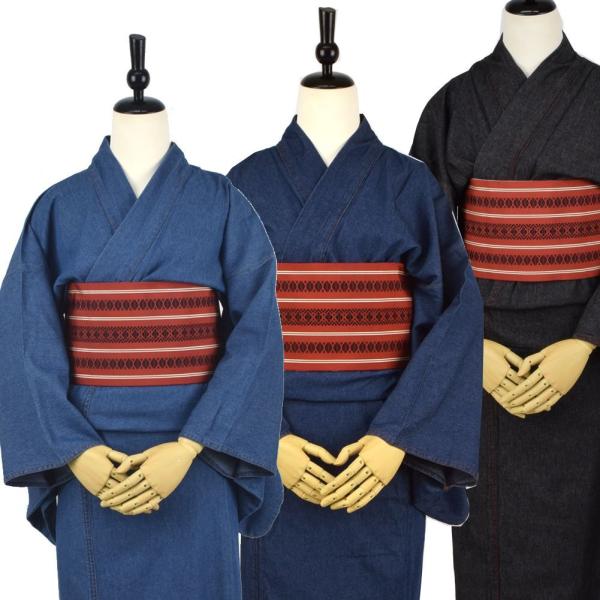 (女単衣 デニム) 着物 デニム レディース 洗える 3colors デニム着物 女性 綿 M/L(rg)