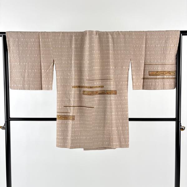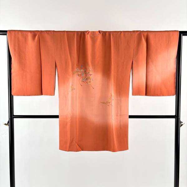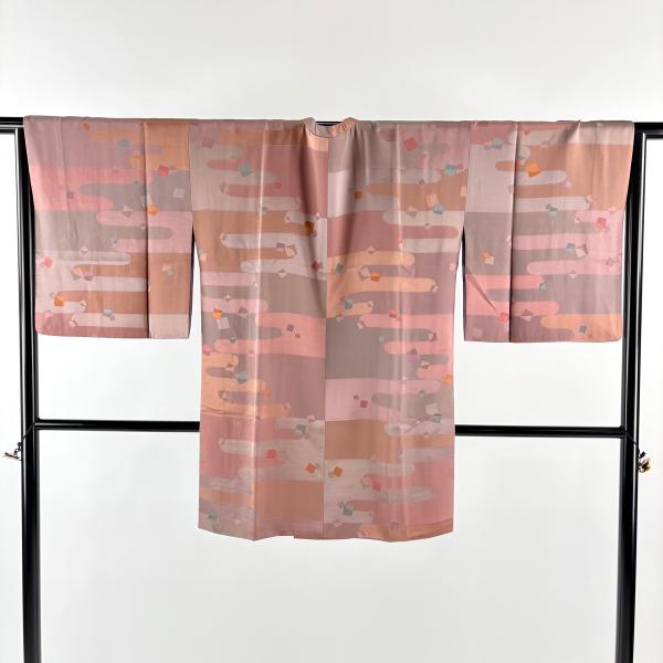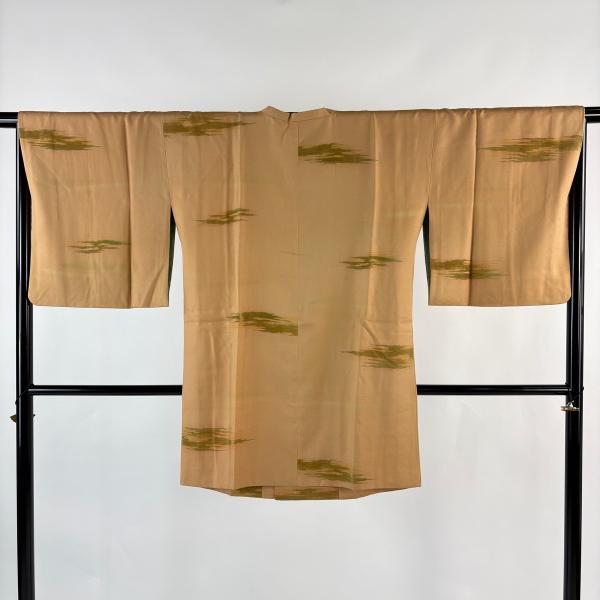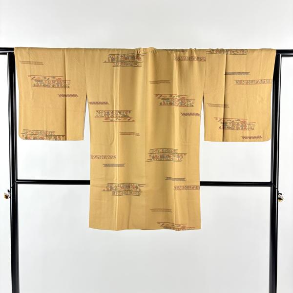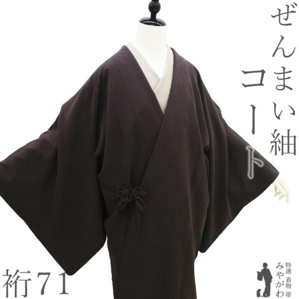 道行 身丈84cm 裄丈63.5cm S 和装コート 角衿 草花 絞り 焦茶色 正絹 秀品 中古