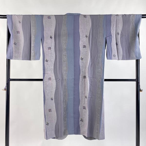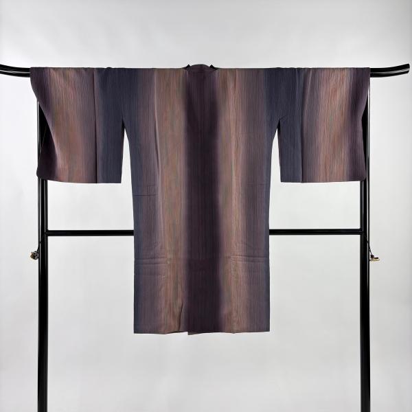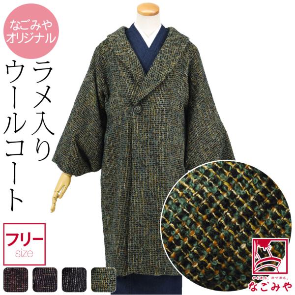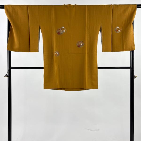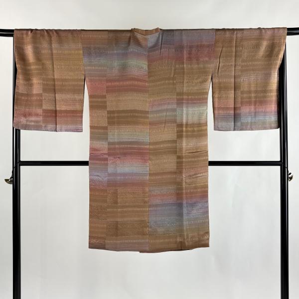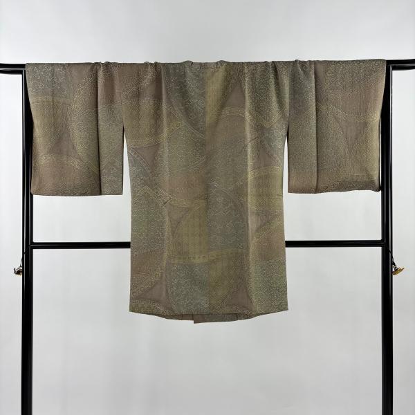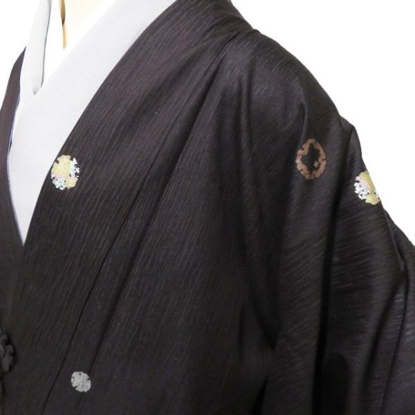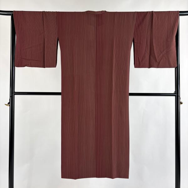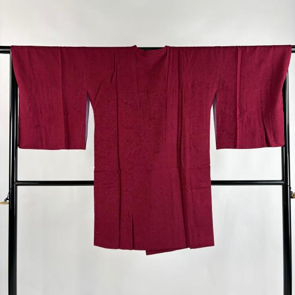 美品 道行 身丈96.5cm 裄丈68cm L 和装コート 角衿 地紋 えんじ色 正絹 秀品 中古