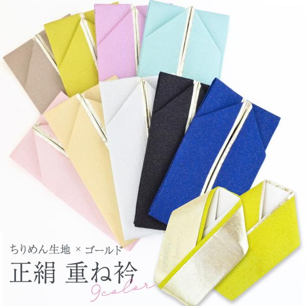 重ね襟 振袖 重ね衿 袴 伊達襟 成人式 卒業式 正絹 2色 2重 4way 金 ゴールド 紺 えんじ グレー アイボリー 金茶 茶色 こげ茶色 深緑 ダークカラー くすみカラー