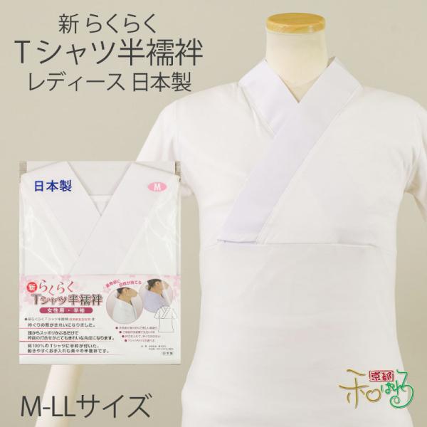 半襦袢 半衿付き 半袖 Tシャツ 日本製 M L LL サイズ レディース 半衿 肌襦袢 襟付き 衿付き 付 和装 白 半衿 襦袢 肌着