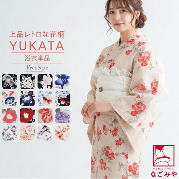 浴衣 レディース 訳あり 単品 女性 ゆかた 花柄 レトロ モダン 柄 綿 ポリエステル 大人 フェミニン 可愛い おしゃれ セール品 アウトレット 訳アリ