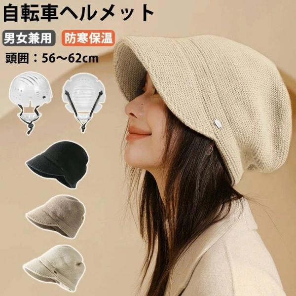 帽子型ヘルメット レディース 帽子 ニット帽 防寒 軽量 ヘルメット 自転車ヘルメット おしゃれ 女性用 大人用 バケットハット型 日よけ UVカ