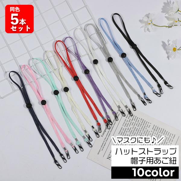 ハットストラップ 同色5本セット 帽子用 あごひも マスク ホルダー マスクストラップ マスク紐 落下防止 長さ調節可能 平紐 脱着式 無地 単色 カ