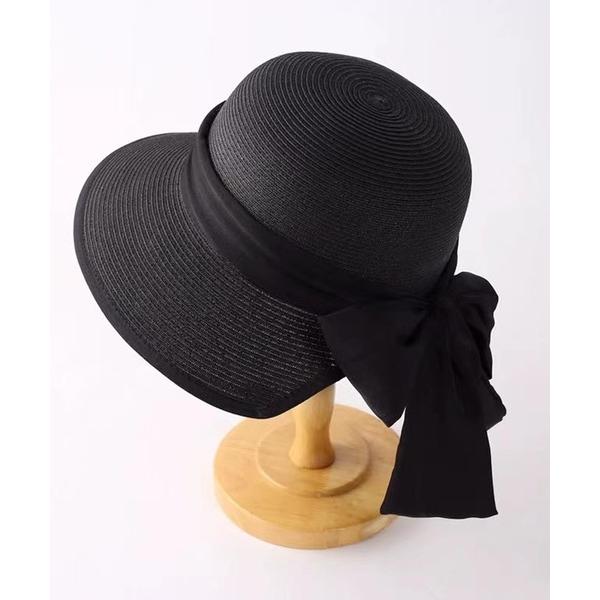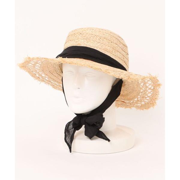帽子 ハット ロゴポイントリボンストローハット レディース
