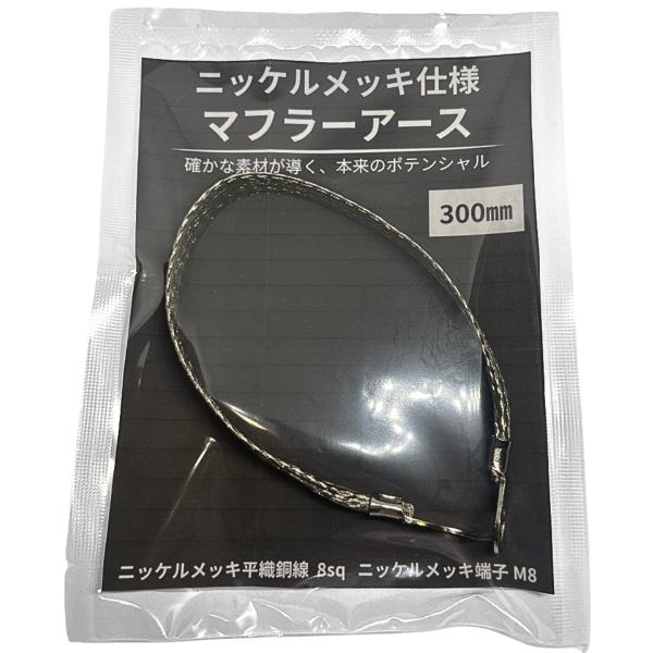 マフラーアース ニッケルメッキ平織銅線 8sq 1本 選べる 300mm 400mm 500mm ニッケル圧着端子 端子M8 バンド付けられます キット アーシング 日本組立・検品