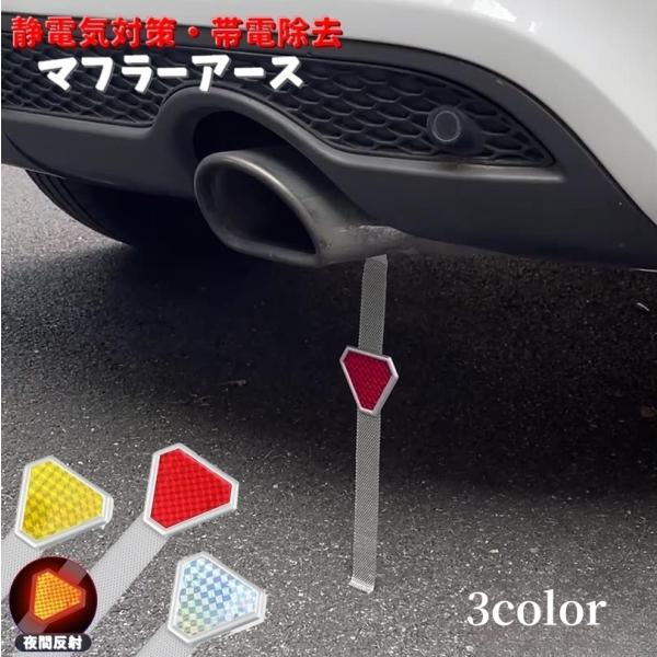 マフラーアース アースベルト カー用品 アクセサリー 静電気対策 放電 排気流動 帯電除去 電子機器対策 取付簡単 反射警告 夜間
