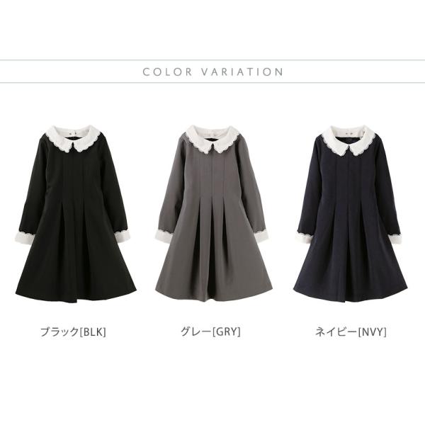 [110 120 130 140 150 160cm ブラック グレー ネイビー 黒 紺 上品 洗練 レディー フレアシルエット 白襟 白カフス お嬢様ルック フォーマル 秋 冬 春 入学式 卒業式 発表会 結婚式 冠婚葬祭 取り外し 着こなしアレンジ 清楚 リッチ 素材感]