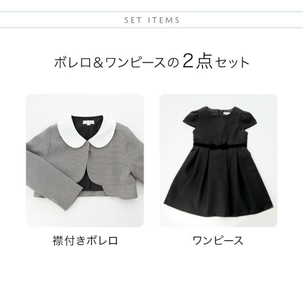 [110 120 130 cm ブラック 黒 グレー 千鳥格子 キッズスーツ おしゃれ 半袖ワンピース スカラップ リボン 法事 喪服 結婚式 七五三 発表会 子供服]
