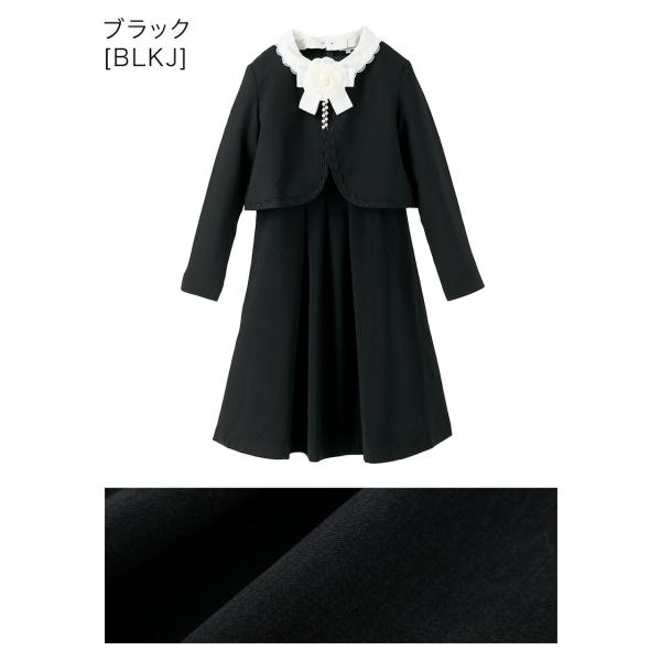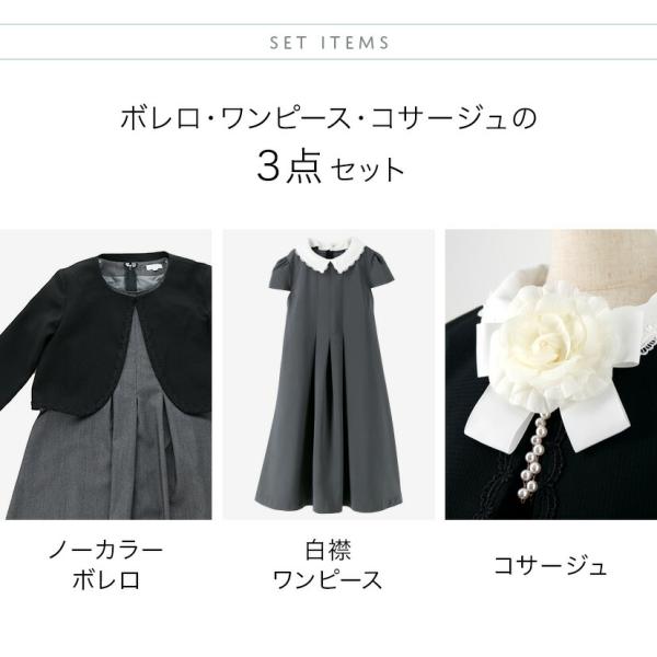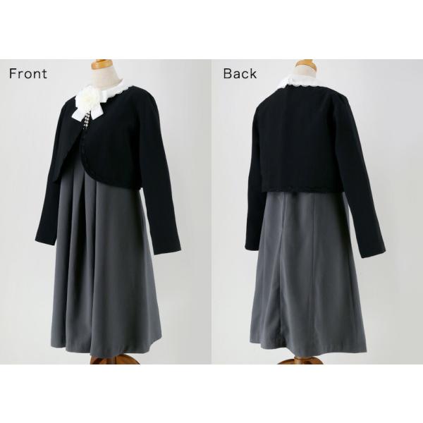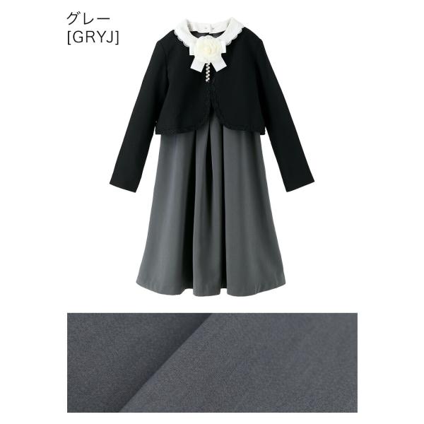 [卒業式 結婚式 発表会 女の子 キッズ ジュニア 140cm 150cm 160cm 165cm ワンピース ボレロ 白襟 レース コサージュ フォーマル 冠婚葬祭 喪服 礼服 黒 グレー モノトーン シンプル キャサリンコテージ 上品 おしゃれ]
