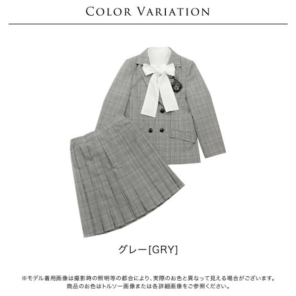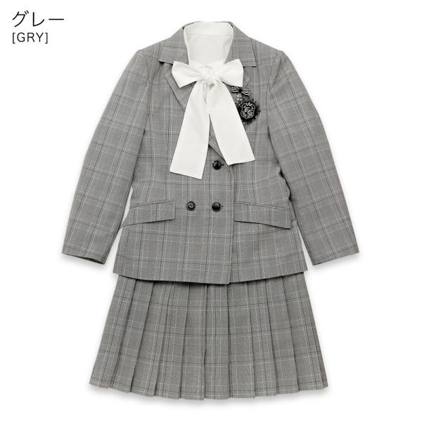 [卒業式 小学校 七五三 結婚式 発表会 女の子 キッズ 子供服 140cm 150cm 160cm 165cm グレー チェック柄 グレンチェック クラシック セットアップ ジャケット ブレザー ダブルブレスト スカート ブラウス リボン フォーマル スーツ アンサンブル 上品 清楚 着回し キャサリンコテージ 韓国風 ガールズスーツ 小学生 ジュニア 高学年 6年生 卒服 オケージョン]
