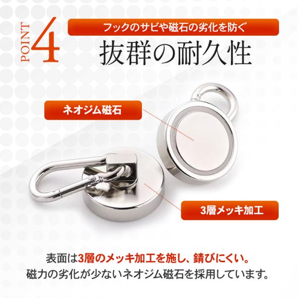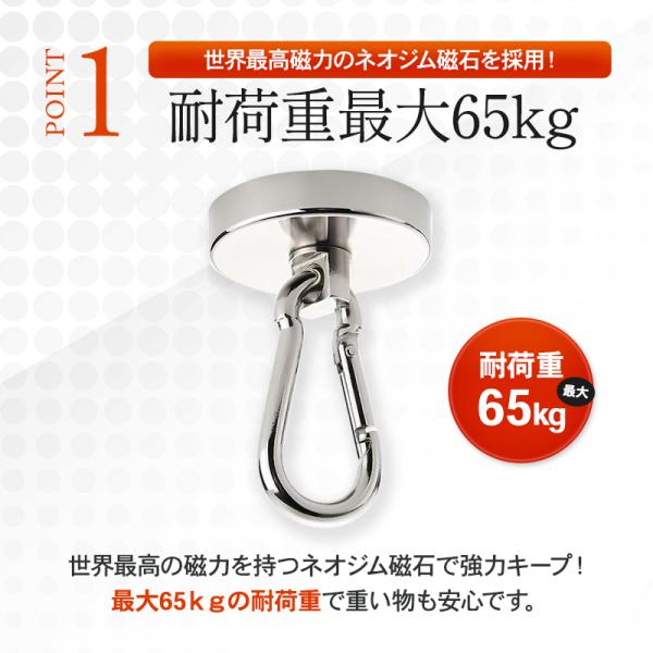 商品名:マグネット フック カラビナ 強力 磁石 耐荷重 セット 4個 キッチン 頑丈 外れにくい 耐久性 冷蔵庫 垂直 屋外 回転 360度
