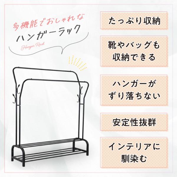 商品名:ハンガーラック 収納 おしゃれ インテリア シンプル パイプハンガー 洋服掛け ブラック ホワイト 頑丈 大容量 小物