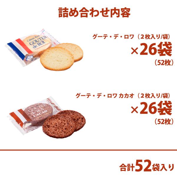 内容量:グーテ・デ・ロワ 2枚入×26袋(52枚) / カカオ 2枚入×26袋(52枚)