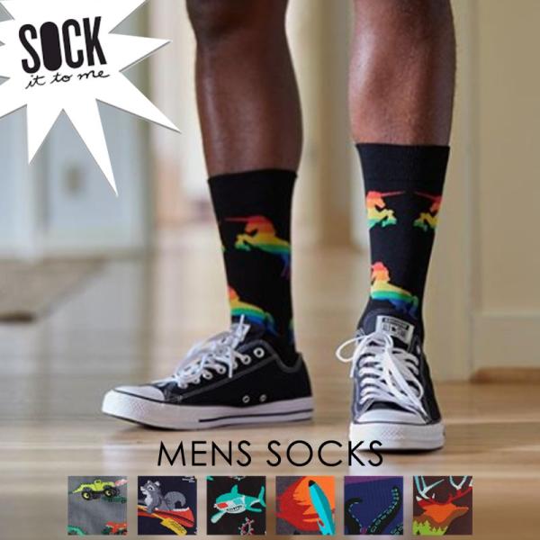 ソックス メンズ 靴下 総柄 自転車 乗り物 クルーソックス Large Bikes Sock It To Me ソック イット トゥ ミー