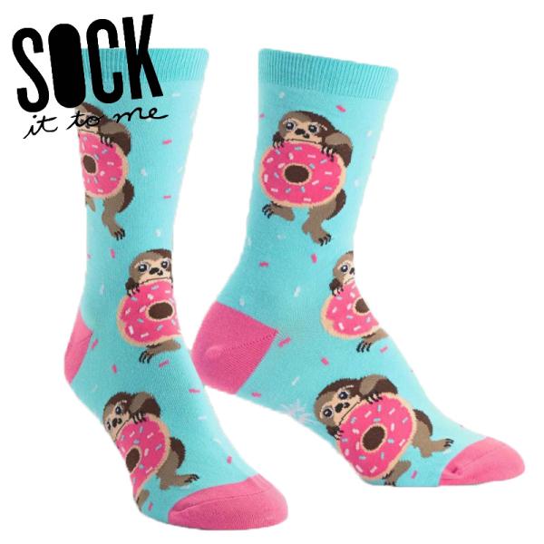 ソックス レディース クルーソックス 靴下 総柄 ナマケモノ 動物 Snackin' Sloth Sock It To Me