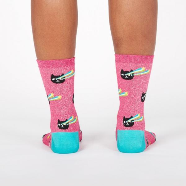 クルーソックス ソックス レディース 靴下 総柄 キラキラ ネコ 動物 Pew! Pew! Sock It To Me
