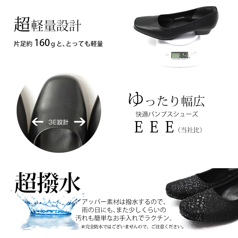 【3E(EEE)】ワイズで【ゆったり幅広】快適なパンプスシューズです。