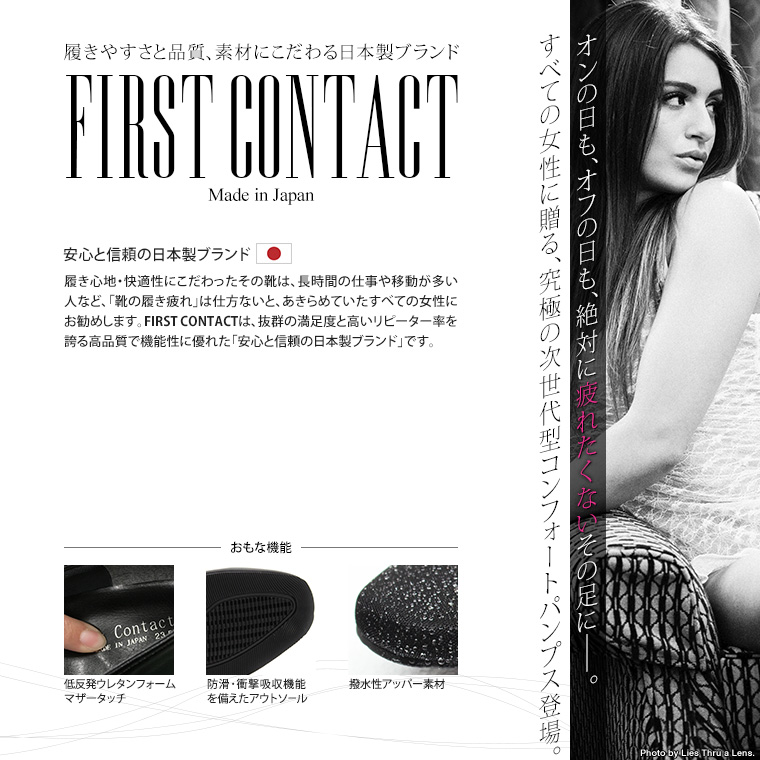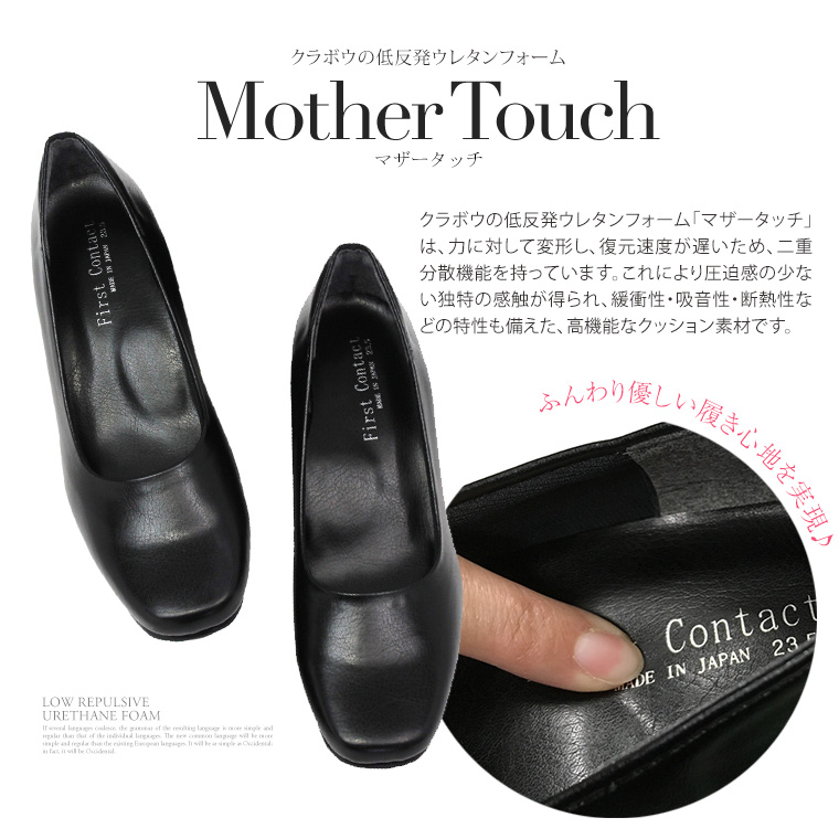 日本製 FIRST CONTACT ファーストコンタクト 3e 美脚 撥水 ストレッチ フォーマル パンプス ストラップ レディース 太ヒール ローヒール リクルート BLACK 爆買