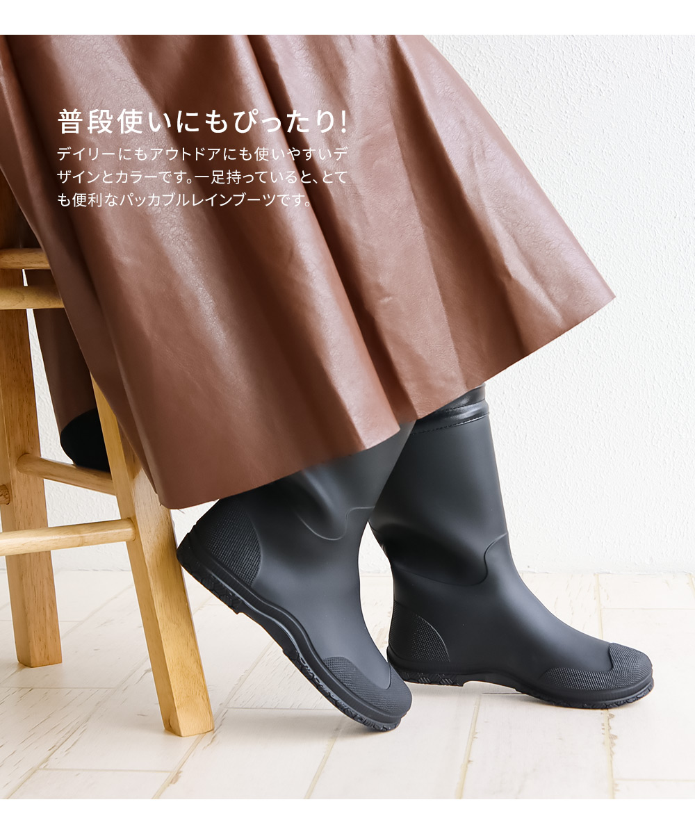 一足持っていると、とても便利なパッカブルレインブーツです。