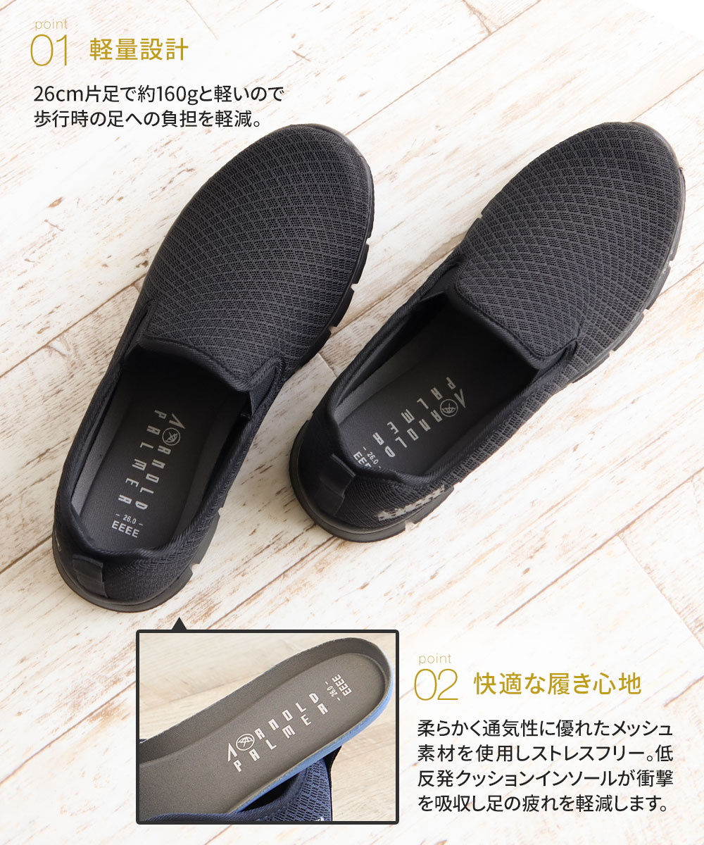 アーノルドパーマー スリッポン メンズ 幅広 屈曲性 軽量 ランニングシューズ ウォーキング メッシュ 通気性 シンプル ブラック 0006 0016