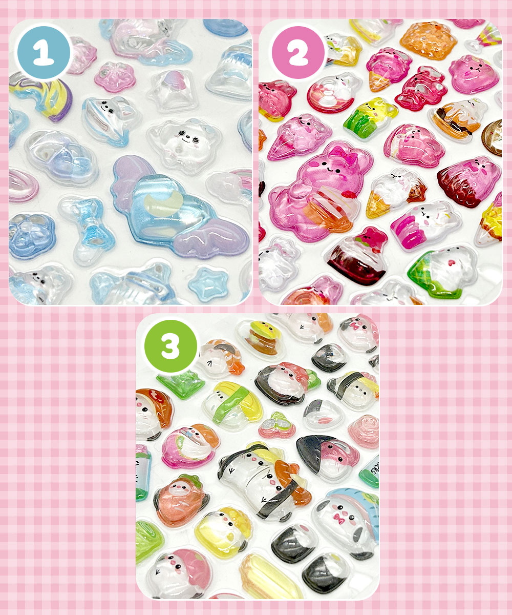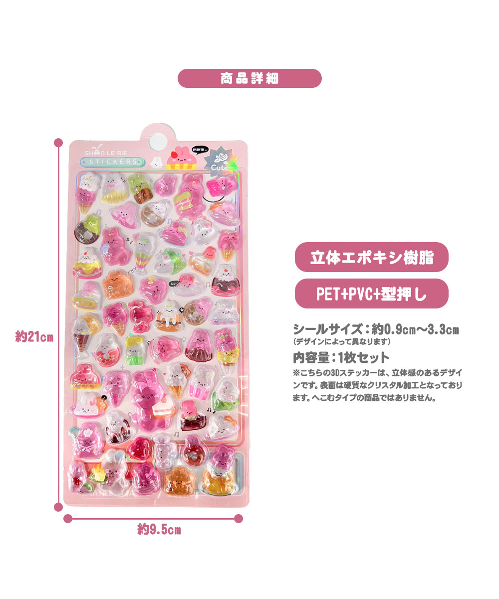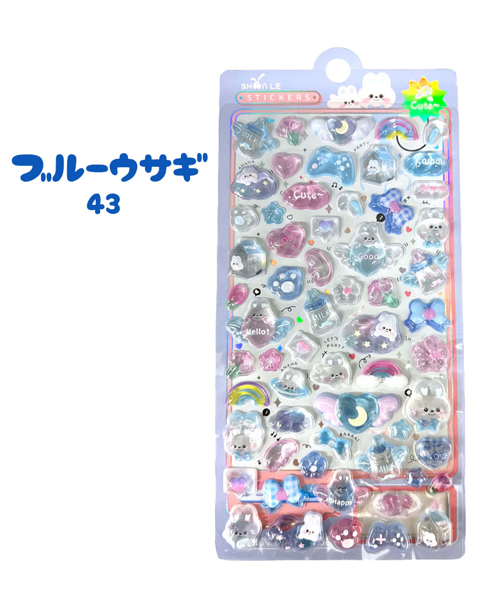 ぷっくりシール クリスタル つやつや キラキラ 立体 3D セット デコ キャラクター ウサギ シマエナガ お寿司 リボン アニマル かわいい 手帳 スマホ 鏡 爆買