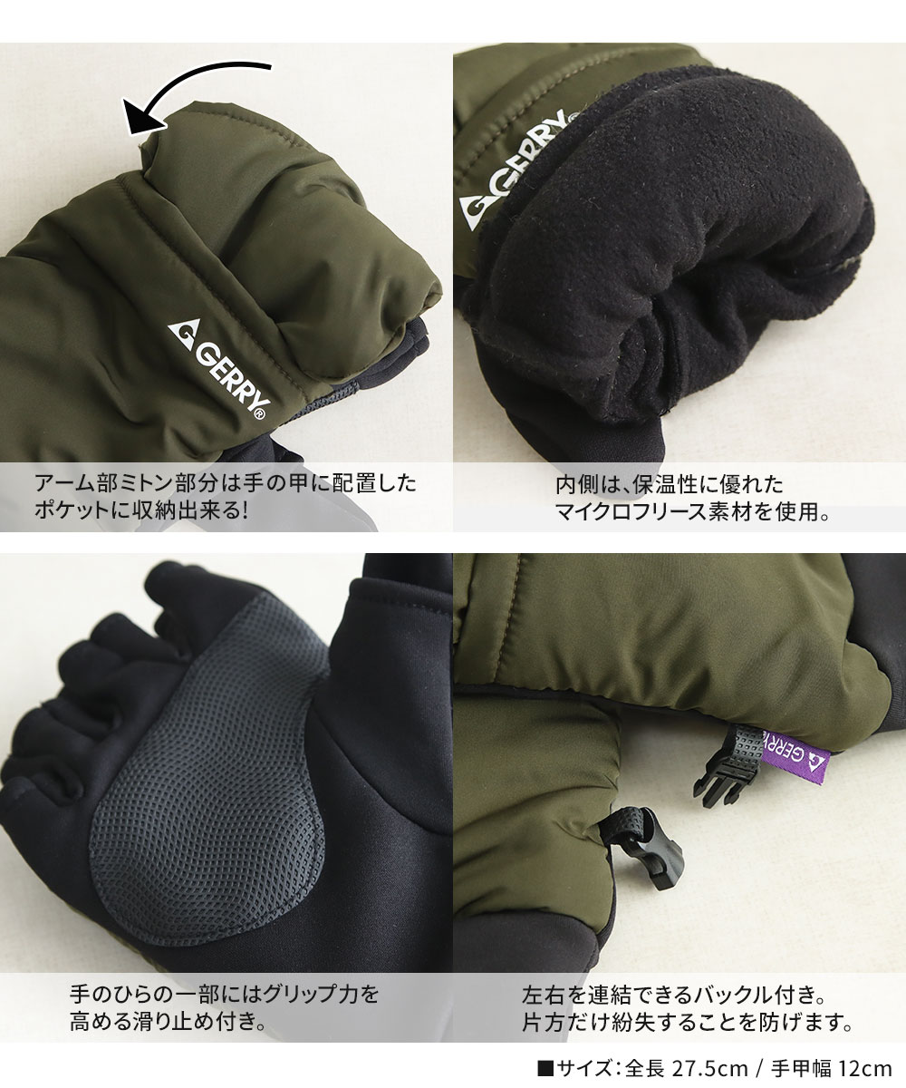 ジェリー 手袋 メンズ レディース ブランド フード付き 滑り止め付き ミトン型 秋冬 防寒 あったかグッズ グローブ gerry t1320