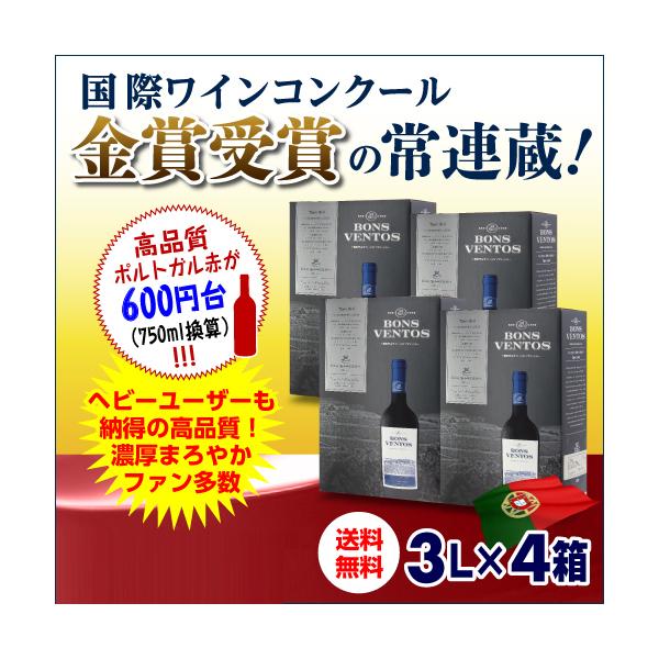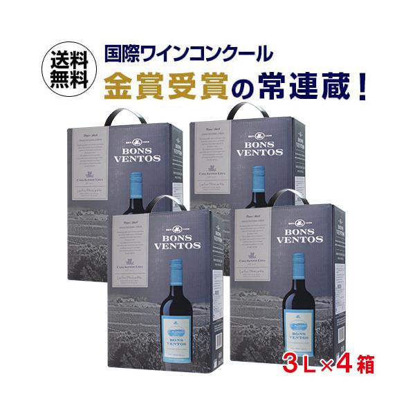 ワインセット 赤セット ワイン 格安 箱ワイン 4本 ボンス ベントス ティント カーサ サントス リマ 3L(4箱) 送料無料 スペイン 長S1 爆買 キャンペーン