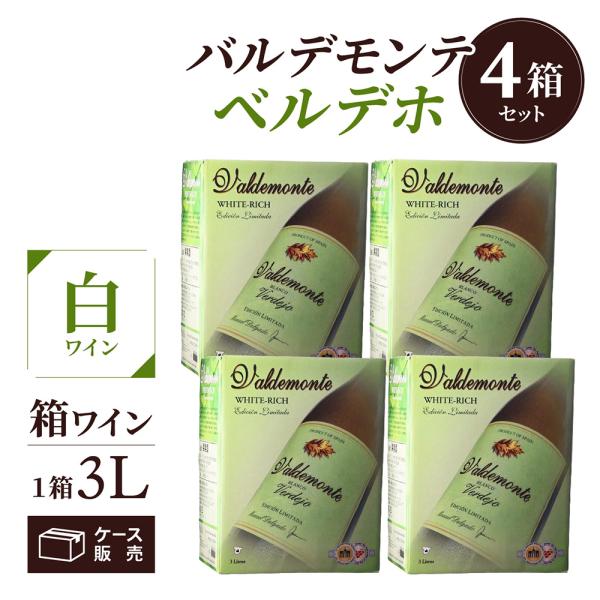 箱ワインセット 白 ボックスワイン バルデモンテ ホワイト ベルデホ 3リットル 4箱 格安 スペイン 辛口 送料無料 長S1 爆買 キャンペーン