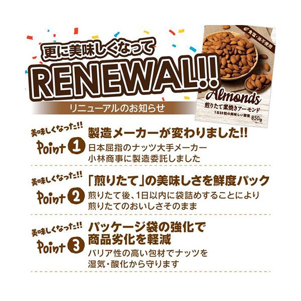 おいしくなってリニューアル 送料無料 小林商事 素焼きアーモンド 850g 食塩不使用 無塩 大容量 ナッツ ロースト ノンオイル ポスト投函 賞味期限2026年10月 八幡1 爆買 キャンペーン