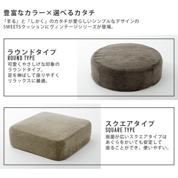クッション ヴィンテージ 丸型 ラウンド 四角 スクエア 洗濯可能 日本製 低反発クッション SWEETS 座布団 子ども カバーリング インテリア 北欧 おしゃれ
