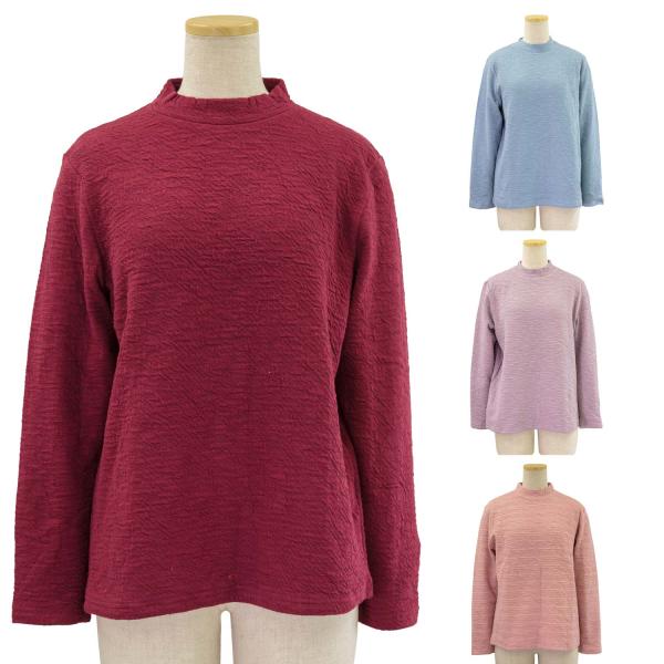 日本製 フクレ ジャガード 長袖 Tシャツ カットソー ロンT 婦人 レディース シニア レディース シニア 70代 80代 90代 母の日 シニアファッション