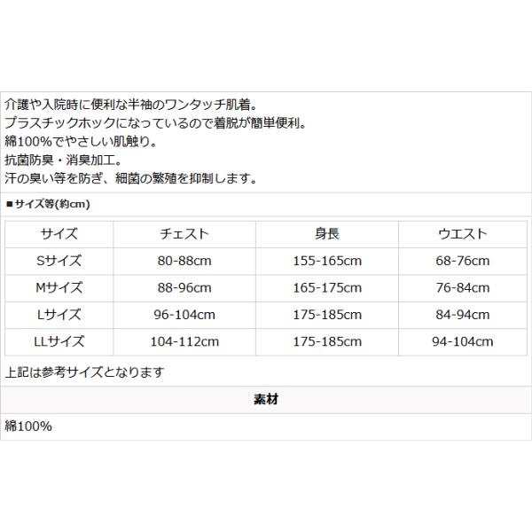 シニア 高齢者 半袖 ワンタッチ プラスチックホック スナップボタン 前開き 肌着 入院 介護 紳士 通販