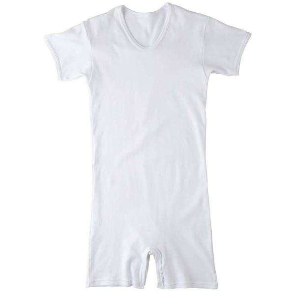 紳士 シニア向け ロンパース 3分袖 ワンタッチ肌着 ホック式 Tスーツ ロンパス型 シニアロンパース