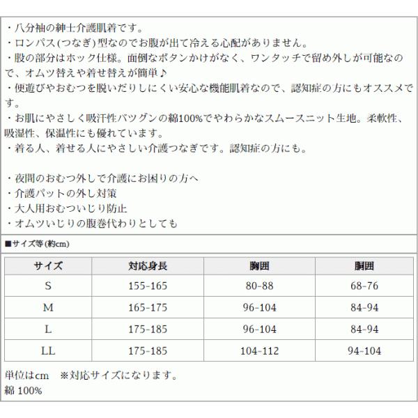 紳士 介護肌着 ロンパース 3分袖 ワンタッチ肌着 ホック式 Tスーツ ロンパス型 シニアロンパース シニアファッション メンズ 80代 70代 90代 高齢者 服
