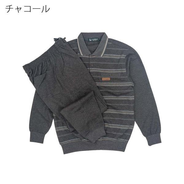通年 快適 スウェットスーツ ポロ ブルゾン ダンボール パンツ 上下セット 衿付き 紳士 シニアファッション 60代 70代 80代 90代 介護 施設