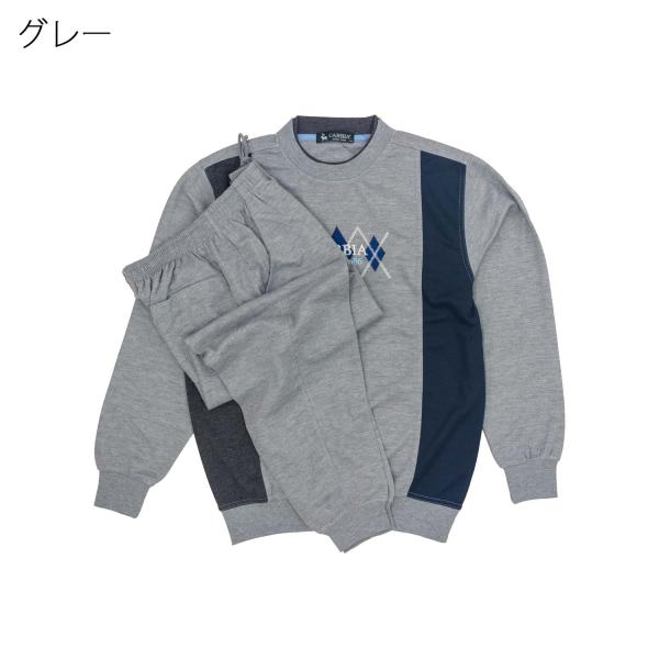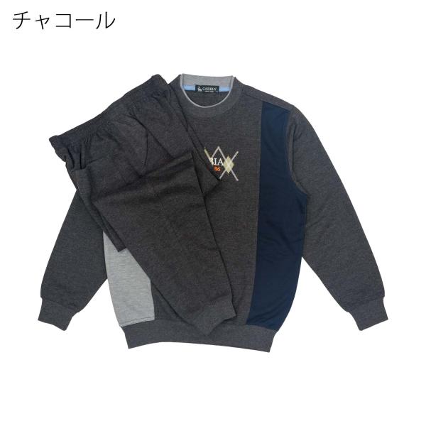 スウェットスーツ クルー ブルゾンパンツ 上下セット(敬老の日 父の日 プレゼント シニア ナイトウエア 男性 ギフト 刺しゅう 介護 高齢者) 洋服 紳士 施設 介護 春夏