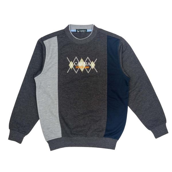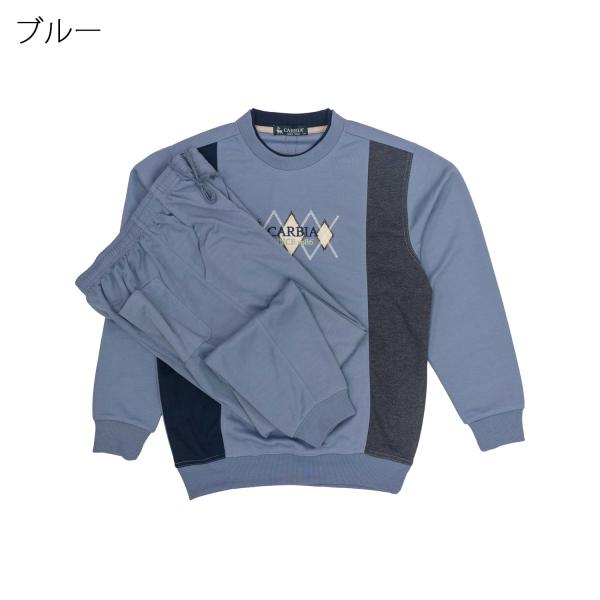 シニア 通年■快適 切替デザイン スウェットスーツ クルー ブルゾン ダンボール パンツ 上下セット 丸首 メンズ シニアファッション 紳士服 70代 80代 90代