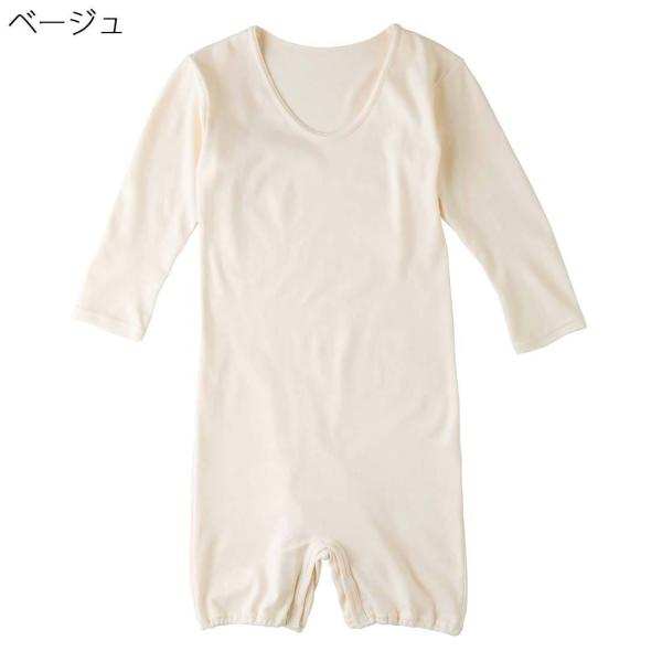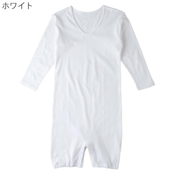 婦人 シニア向け ロンパース 8分袖 ワンタッチ肌着 ホック式 ロンパス型 シニア ロンパース